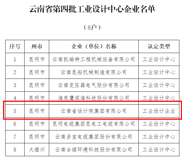 集團(tuán)獲評云南省“工業(yè)設(shè)計(jì)企業(yè)”
